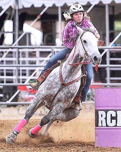 Mizz Zen Master, also known as “Vegas,” is a Minnesota bred mare by Mizzen Mast, a son of Cozzene. Vegas started twice at Canterbury Park, placed 7th and 9th, and earned $290 at the track. Racing was not her forte, but she has found her niche barrel racing with Brianna Westendorf. This beautiful gray mare has a strong shoulder, short back, and large hip. Her compact frame allows her to easily make sharp turns. She is super willing and enjoys her new job. The pair also trial ride. Brianna says that Vegas is calm, yet loves having a job and learning new things. She has a fantastic temperament, just like her grand sire.