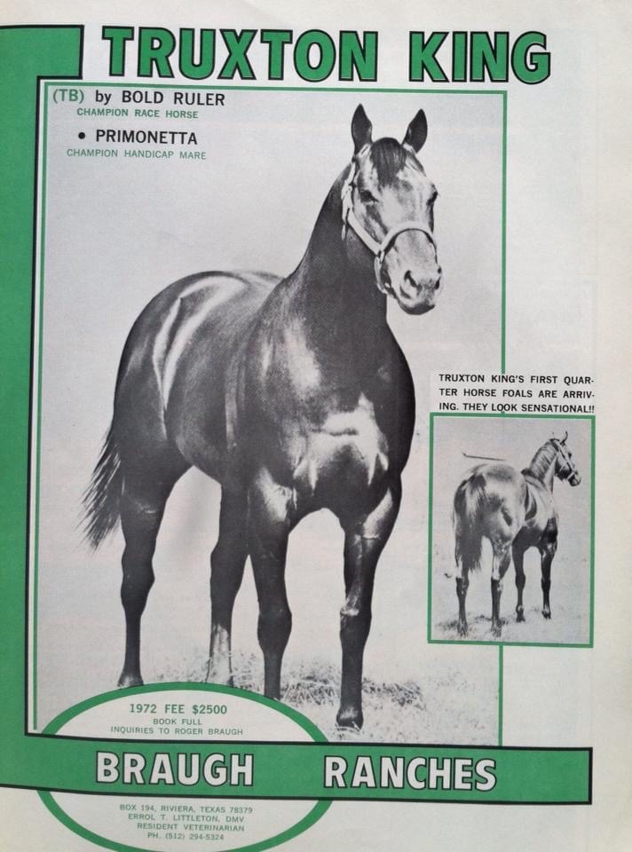 A 1972 stallion advertisement for Truxton King.