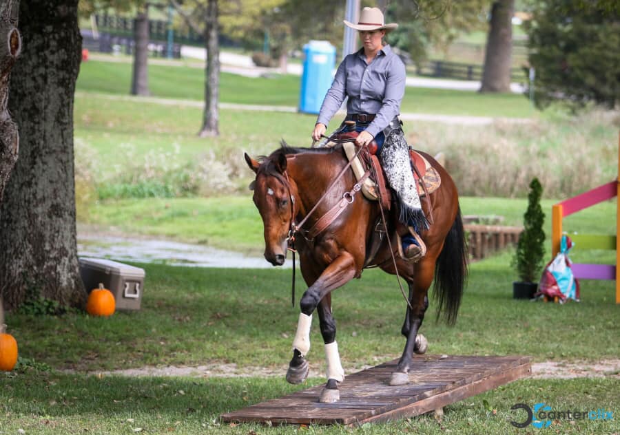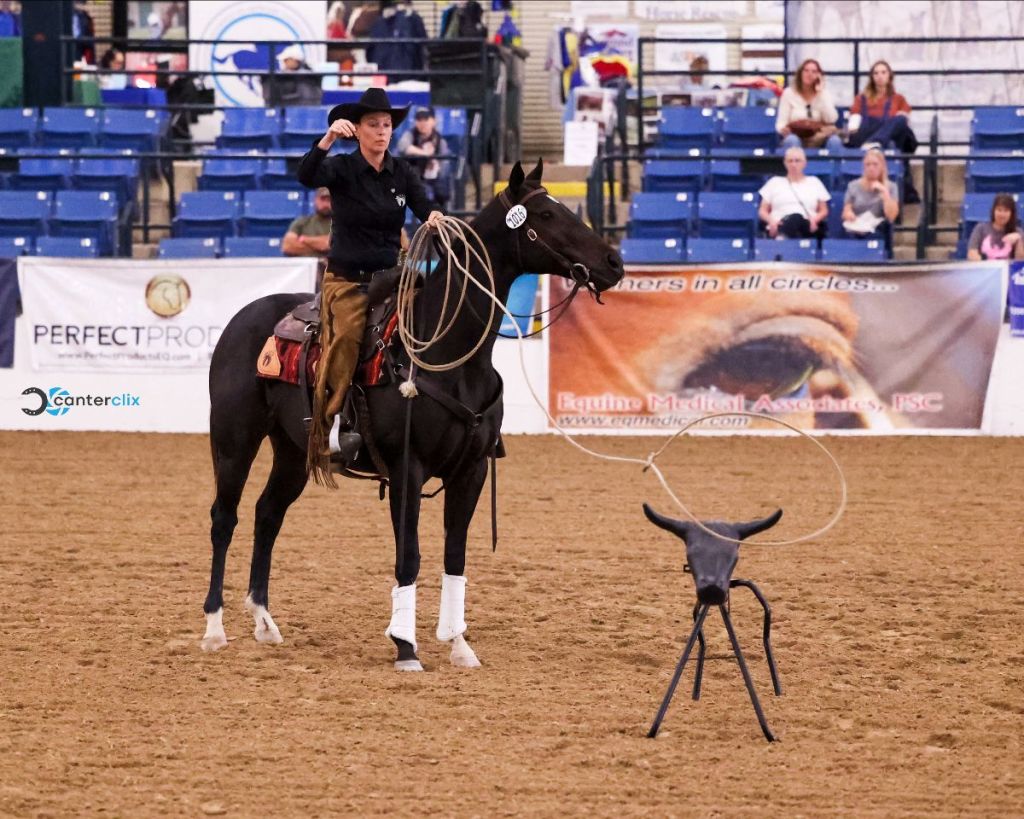 Raechel Ramsey and Aussie Prayer won the 2020 Ranch Work at the TCA Thoroughbred Makeover. Aussie Prayer is a nine-year-old New York-bred mare by multiple graded stakes winner All American and out of stakes winner Peg’s Prayer, by Rodeo. She made 40 starts, won seven races, and earned $216,441 on the track. Her seven wins were at Saratoga, Belmont Park and Presque Isle Downs.