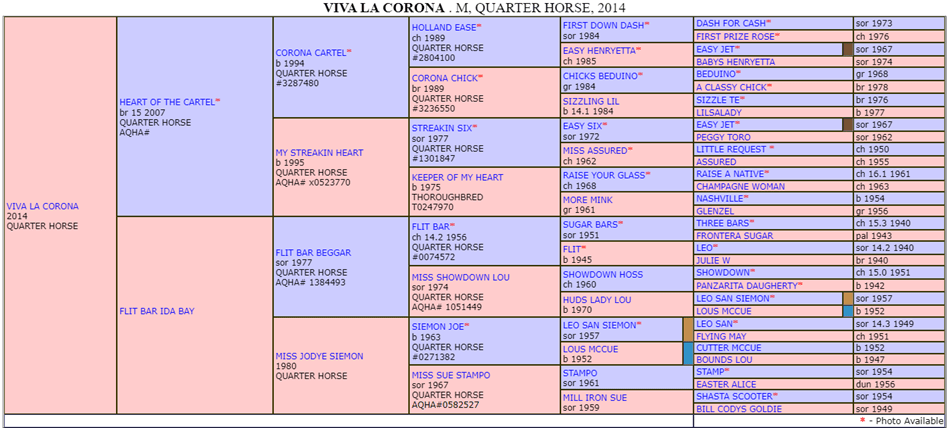 Viva is a 2014 mare bred in Oklahoma by Lana Merrick-Bailey. She is by Heart of the Cartel and out of Flit Bars Ida Bay, by Flit Bar Beggar. Prominent Thoroughbreds in her pedigree include Three Bars, Beduino, Lilsalady, Little Request, Keeper of My Heart, Raise Your Glass and Nashville.