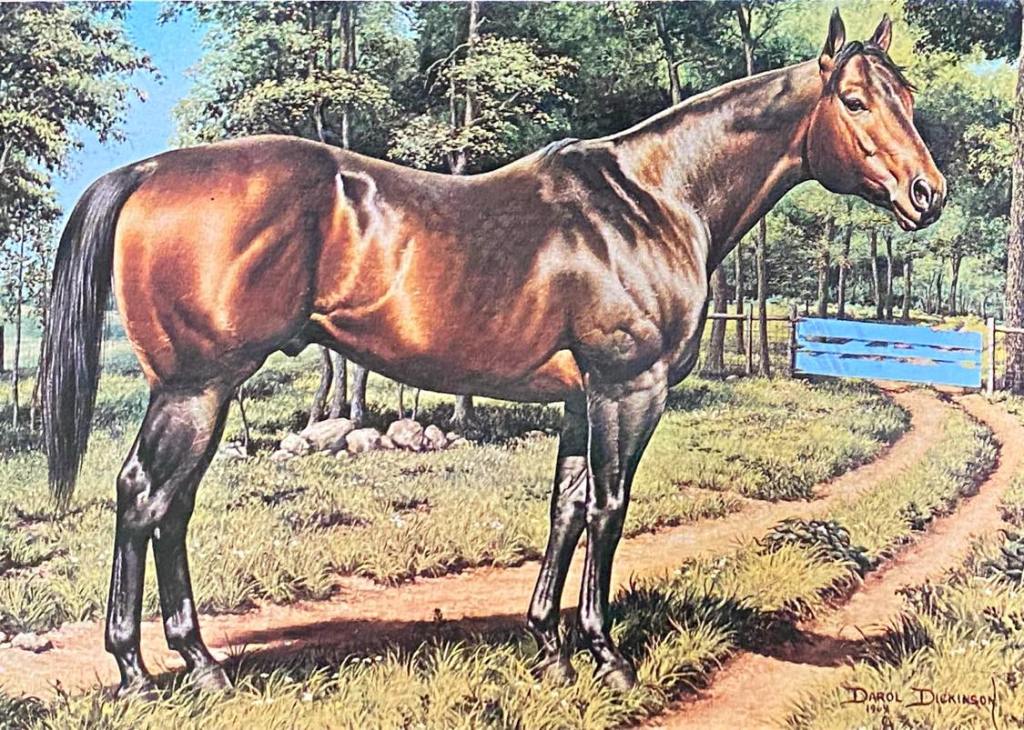 In his prime, Silver Thistle stood 14.3HH and weighed 1,100 pounds. He had a huge hip, strong shoulder, and a remarkably robust frame. Silver Thistle was owned by W. R. “Chick” Wehrle of Ponca City, Oklahoma. After each breeding season, Chick welcomed any horse to match race against Silver Thistle on official tracks in Oklahoma. Allegedly, the chestnut stallion was never defeated at distances between 50 and 870 yards. He outran Vandy Lee, Red Pepper D, Mac Lee, and many other great Quarter Horses. Silver Thistle only covered a handful of mares in his first years at stud, but his books filled once he gained a reputation for stamping his get with tremendous speed and conformation.