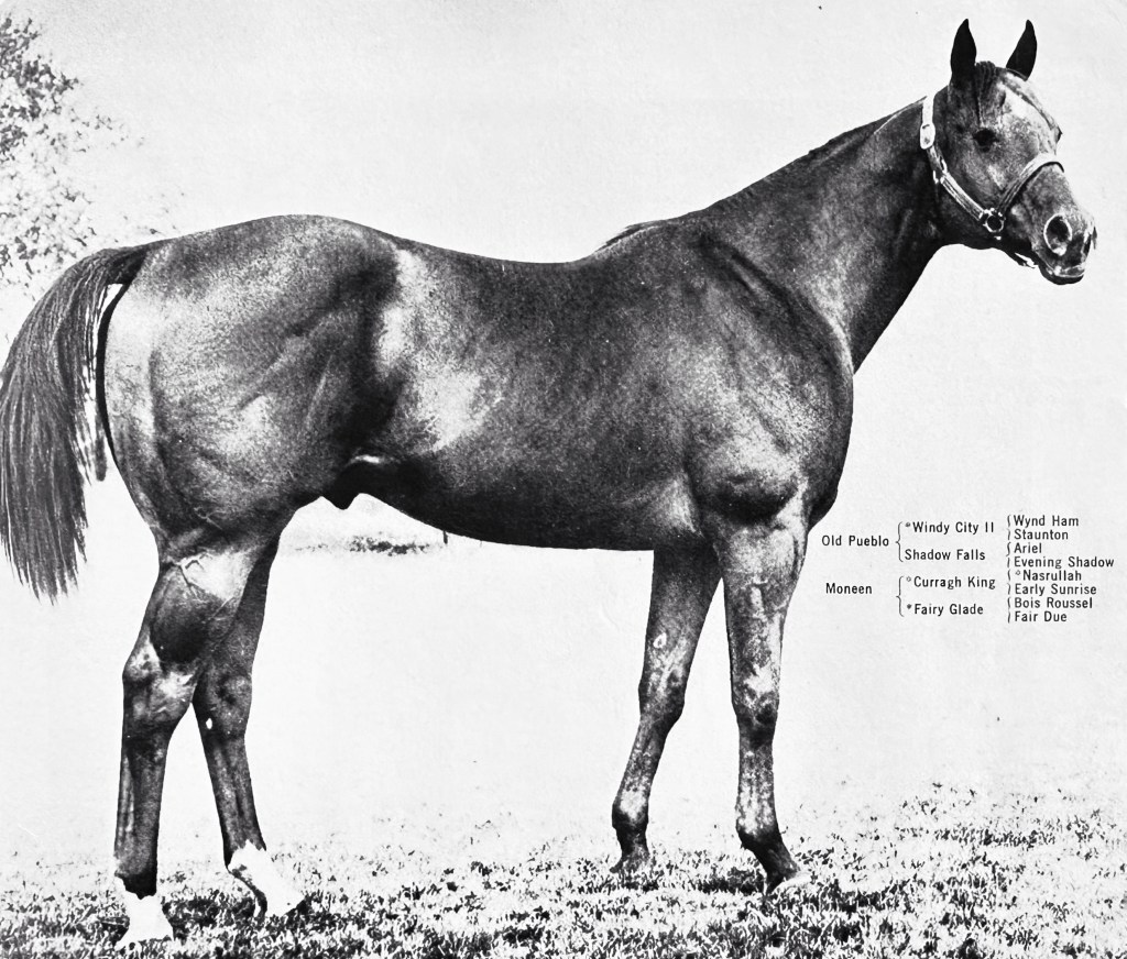 Wee Folk was foaled on March 31st, 1961. He was bred by J. Rukin Jelks, the founder of Rillito Downs in Tucson, Arizona. Old Pueblo, the sire of Wee Folk, was by Windy City II and out of Shadows Fall, by Ariel. He won ten races, including the California Breeders’ Trail Stakes, Del Mar Futurity, Debonair Stakes, San Vicente Handicap and California Breeders’ Champion Stakes. Old Pueblo sired many Quarter Horses including stakes winners Miss Pajamas, Pueblo High and Shawnee Hoo and performance ROM-earners Apache Pueblo, Pueblos Payday and Sunday Times. His Thoroughbred sons Chinle, Fashion Center, Oldie, Page, Sporting Tiger, Unojo, Windy Pueblo and Winged Pueblo also sired Quarter Horses, Paints and Appaloosas.