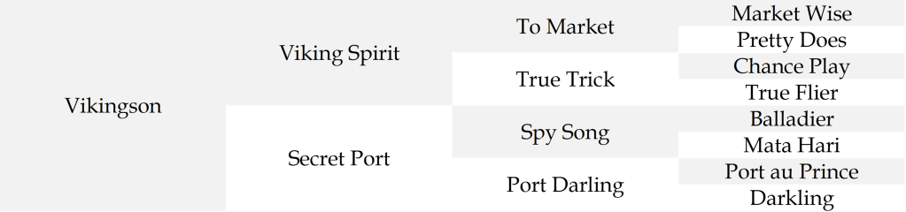 Other important broodmares by Vikingson included Holly Hocks Doll, the dam of St Willa, Ricks Reb and HD Doc; Nordic Nancy, the dam of Sea Nancy Run, Doo Dah Dat and Doo Dat Again; and Lori Darlin, the dam of Darlin Dasher and No Magical Talent. Other stakes winners out of Vikingson mares included Sparkling Secret, Bigtime Hurrah, Bold Viking, Nordic Turbo, AM News, Ease N Passum, April Toro, Osceolas Angela, Oro O Toole and Mr Vikenson.