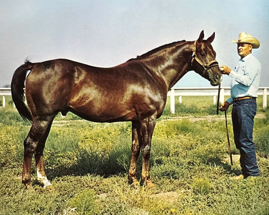 In 1966, Jones went to work for Walter Merrick. He took Good Bird with him. Merrick purchased a share of the stallion and stood him alongside Three Bars at his 14 Ranch in Sayre, Oklahoma. “Johnny had always had a good eye for a horse and he was a serious student of Thoroughbred bloodlines and performance,” Merrick said of Jones, the eventual founder of Walmac Farm in Kentucky, in his biography, Wire to Wire: The Walter Merrick Story by Frank Holmes. “Like Three Bars, Good Bird was a stakes-winning racehorse and had excellent Quarter Horse conformation. He was an above-average sire of early speed, and I stood him to the public for a number of years.”