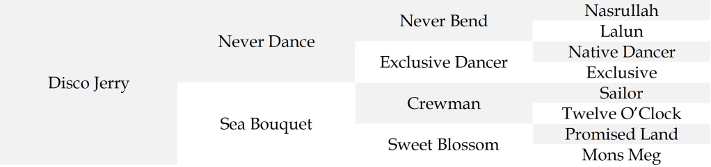 Disco Jerry was foaled on May 18th, 1978. He was bred by Marion D. Kirkland and Anatole Bourque in Louisiana. Disco Jerry was by Never Dance, a gray stallion by the 1962 Champion Two-Year-Old Colt, Never Bend. Never Dance sired a limited number of foals. His highest earner was Lava, winner of the 1982 Capital City Handicap at Penn National. Sea Bouquet, the dam of Disco Jerry, was by multiple stakes winner Crewman and out of Sweet Blossom, by Promised Land. She produced nine foals including race winners Author of Liberty, Art and Music, Kimberly Shan, Kanusue, Joker’s Swifty and Millie’s Bouquet. Her most successful starter, Avenger’s Bouquet, won the 1986 Tellike Handicap. Avenger’s Bouquet went on to produce Quarter Horse race winners Sunset Bouquet and Its My Bouquet.