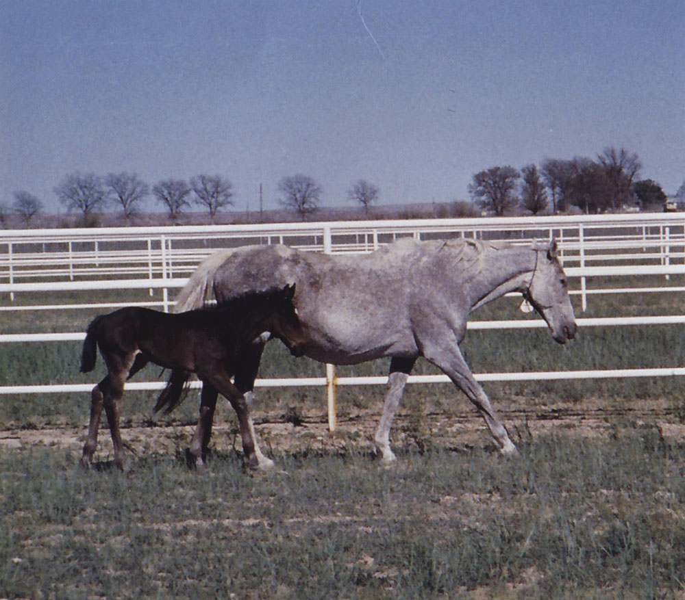 In 1972, Robert E. Gregory bred Esters Little Klu to Bunny Bid, the 1971 AQHA Racing Champion Three-Year-Old Colt. The resulting foal, Ester’s Bunny, won four races and earned a Superior Race Horse award. Ester’s Bunny produced eleven Quarter Horse foals. Her best starter, Six To Five, was the 1992 and 1993 AQHA Racing Champion Aged Stallion. Six To Five sired 138 AQHA registered foals. Ester’s Bunny also produced Mary Major, winner of the 1989 Southwest Derby. Mary Major went on to produce Major Rime, the 1995 New Mexico Hi-Point Three-Year-Old Colt. Major Rime, sired 413 AQHA registered foals that earned over $3.3 million on the track. He was the damsire of First Moonflash, the 2009 AQHA Racing Champion Aged Stallion.