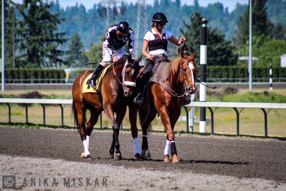 Ashlee Wolf, 26 years old, is based in WA state. She travels between racetracks frequently. She’s an ex jockey, exercise rider and pony person. Ashlee’s background in horses is lifelong even though she has changed disciplines several times. As a pony person and a barrel racer her horse of choice is an OTTB! One of her two geldings is Powerized, a Keeneland sale graduate who is now a pony and out-riding horse. Her other is the warhorse Fishinkonablue. Fish spent his years with Ashlee doing a bit of cross training while he was racing he was also barrel racing, trail riding and ponying on occasion. Ashlee’s next big goal is to attend the Retired Racehorse Project!
