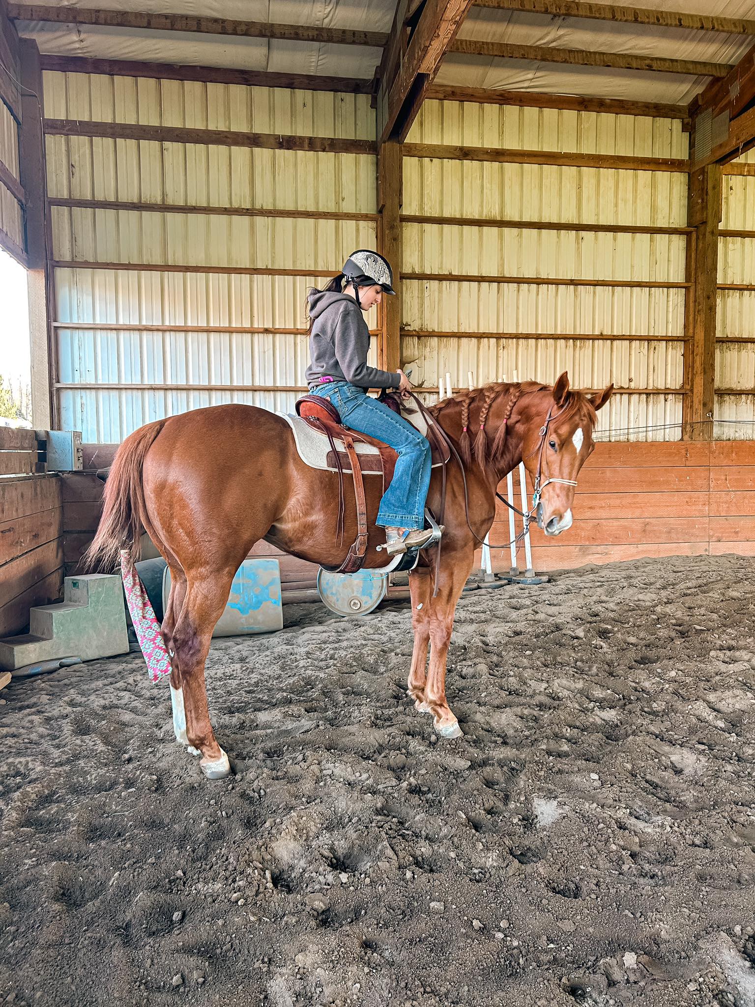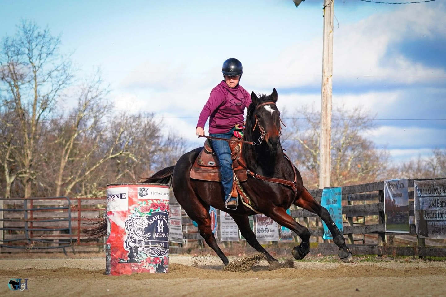 You can follow McKenzie on Instagram at @mckenzie_mae02. She posts a ton of great content on retraining her OTTB for barrels!