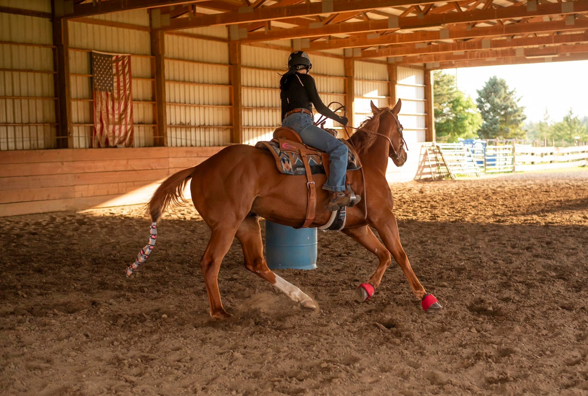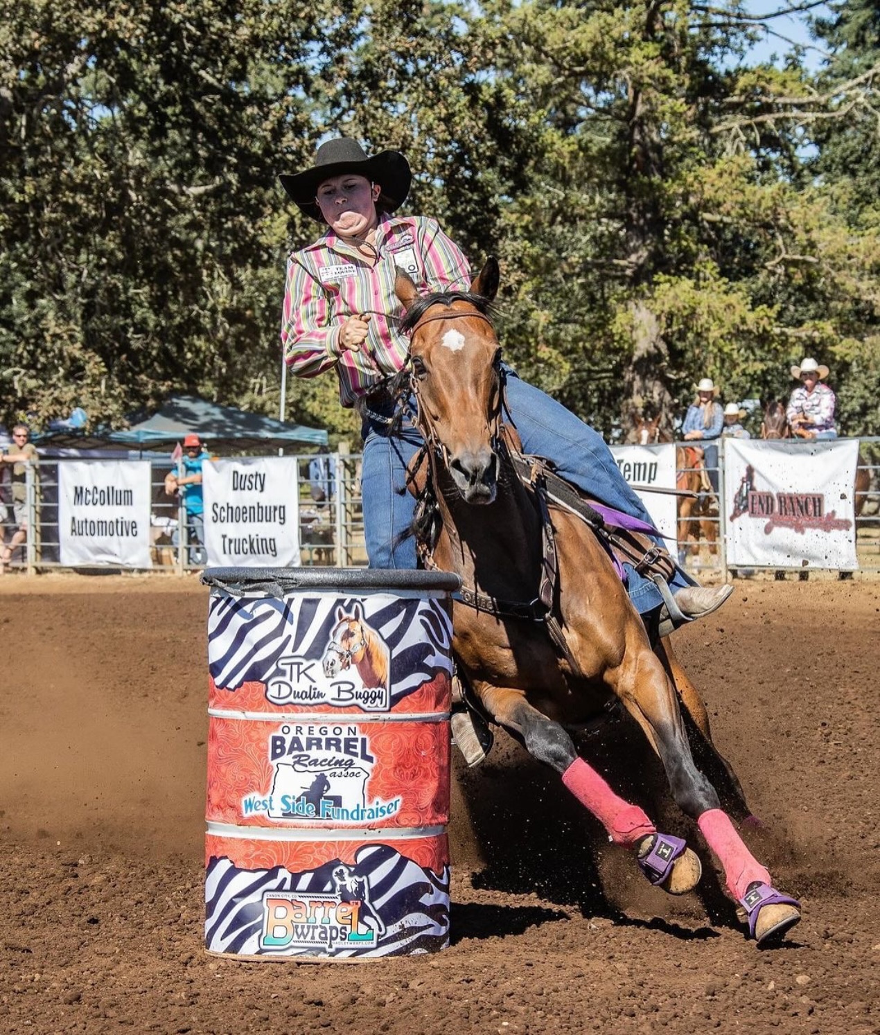 McKenzieMae Brown is a barrel racer from Washington with two horses. Two red geldings to be specific – Royal and Rocket. She grew up in a non-horsey family and it took years of begging and pleading before her family finally allowed her to start taking riding lessons. It snowballed from there! She started lessons at ten and got her first horse at thirteen. She started with 4-H and later became hooked on barrel racing! Now, she has competed in local rodeos and races all over the Pacific Northwest.