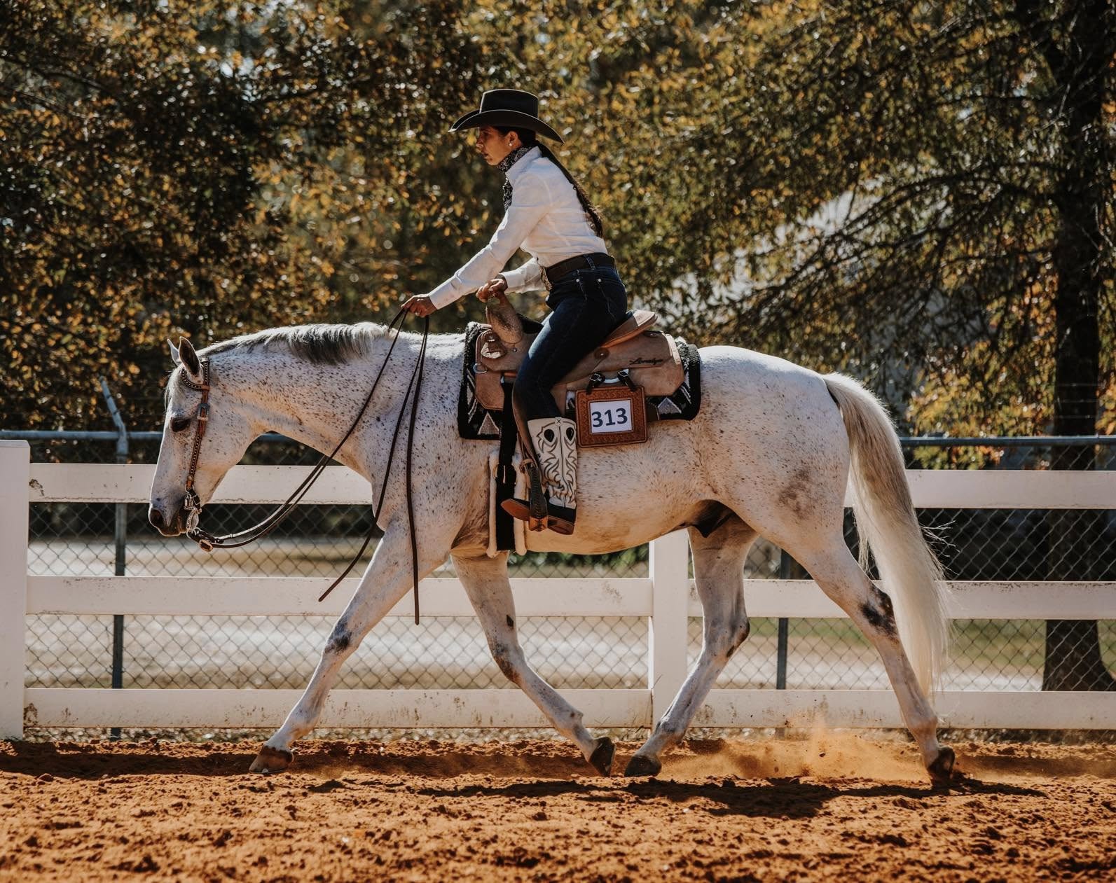 Loralyn started her business, “Team Loralyn,” in 2012. She specializes in Open, All Breed and Hunter shows. She purchased a Quarter Horse mare, Low Ridin Diva, and competed in local reining and ranch riding classes. She has had her Thoroughbred gelding, Knight Court, since she started her business. Knight jumped at local and rated Hunter shows until 2022. Loralyn and Knight have since shifted their focus to ranch riding.