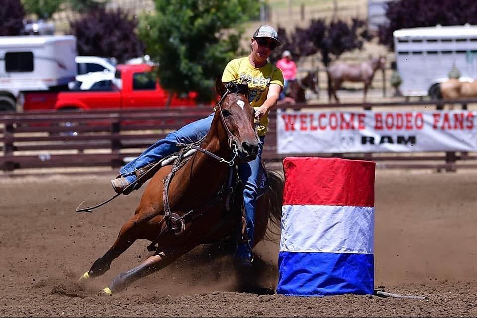 Elisha Zellner lives in Bend, Oregon. Office manager at Back In Action Fitness Equipment and owner of Back In Action Equine offering therapy treatments with her Sports Innovations 3-1 blanket and leg wraps. A unique combination of PEMF, massage and heat. Elisha grew up in the 4-H horse program and showing park saddle seat Morgan horses as a youth competitor. Later she was a 4-H leader and high school equestrian coach for over 10 years. She also judged many local pacific northwest schooling shows in the 90’s. She has raised two daughters the oldest showed AQHA pleasure horses and the youngest competed in NYRA youth rodeos this is where the passion for barrel racing began. Elisha now competes in barrel racing with her OTTB Big Sky Vatti “ Skyler” that she purchased in April 2018 with no barrel training or experience. They travel the northwest competing in OBRA, BSCC, Brn4d sanction jackpots and NPRA rodeos. She most recently won the OBRA 2500 novice year end and 2500 novice average saddles at finals for 2019 season . She was also the Reserve champion senior rider for 2019 in Brn4d Oregon. Elisha just purchased another OTTB My Pal Sully in February 2019 at the closer of Portland Meadows racetrack. She hopes to season him this year and introduce him to the barrel pattern. She has high hopes that he will show the talent and heart of an OTTB champion just as Skyler did. Elisha loves the underdogs and enjoys showing and amazing people with the talents of the thoroughbred breed.